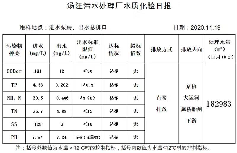 汤汪污水处理厂水质化验日报(2020.11.19)