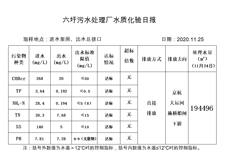 六圩污水处理厂水质化验日报(2020.11.25)