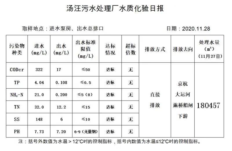 汤汪污水处理厂水质化验日报(2020.11.28)