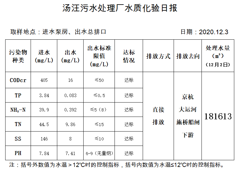汤汪污水处理厂水质化验日报(2020.12.3)