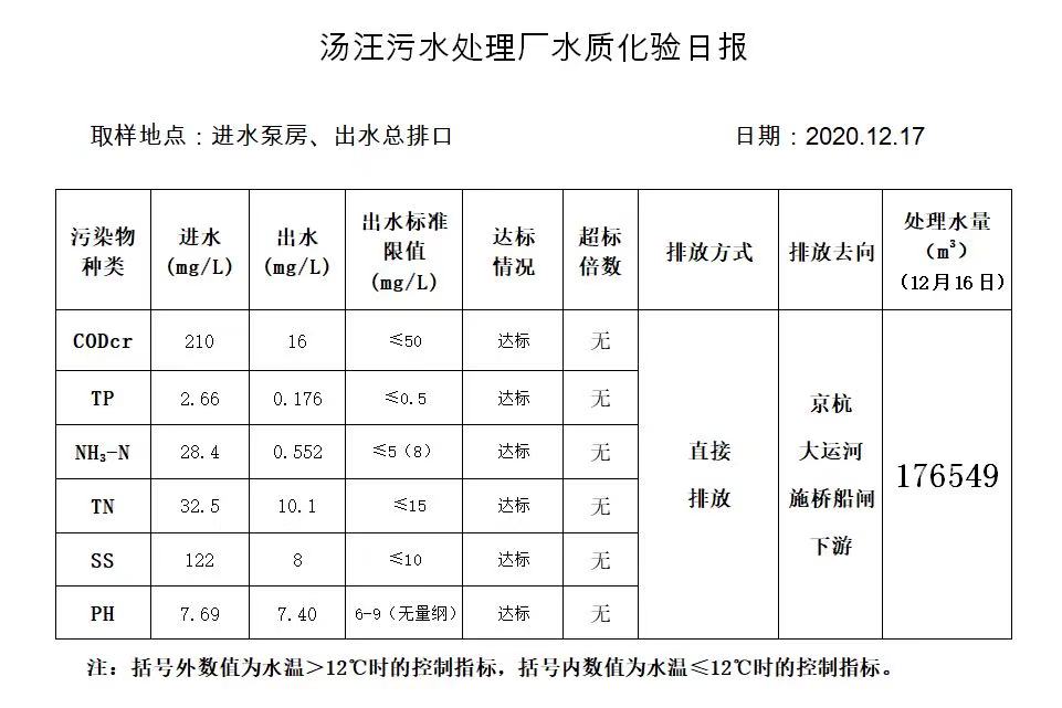汤汪污水处理厂水质化验日报(2020.12.17)