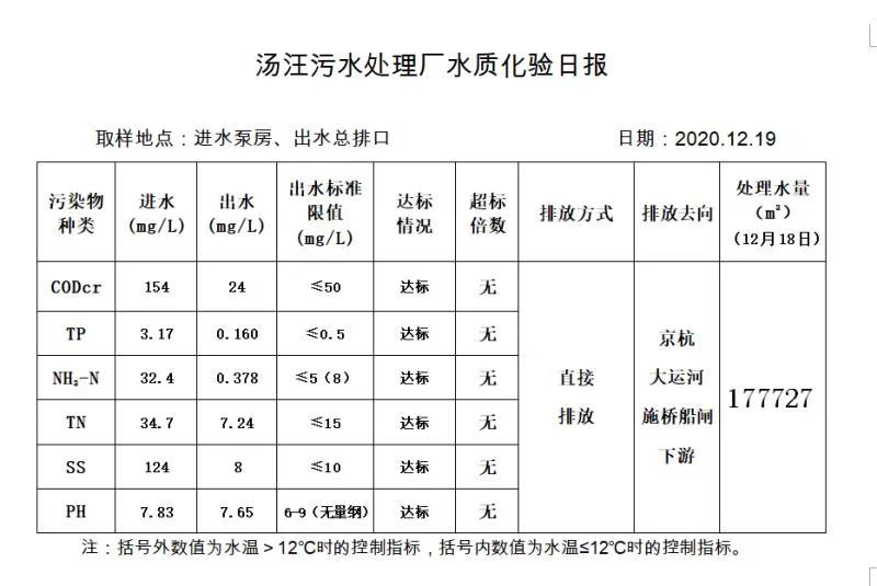 汤汪污水处理厂水质化验日报(2020.12.19)