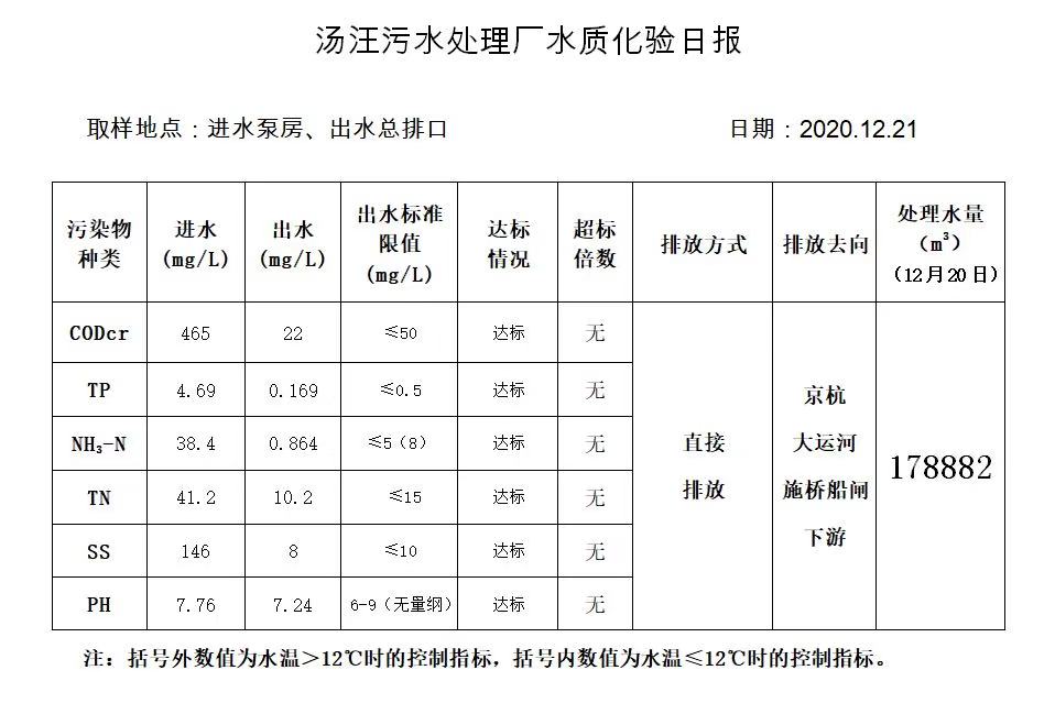 汤汪污水处理厂水质化验日报(2020.12.21)