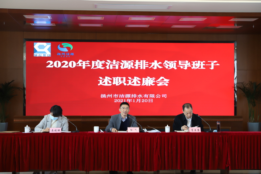 1月20日上午,洁源排水公司召开了2020年度领导班子述职述廉述法述学工作会议。城控集团党委副书记徐飞,集团考核小组出席了会议,洁源排水公司领导班子成员、全体中层干部及部分职工代表参会。