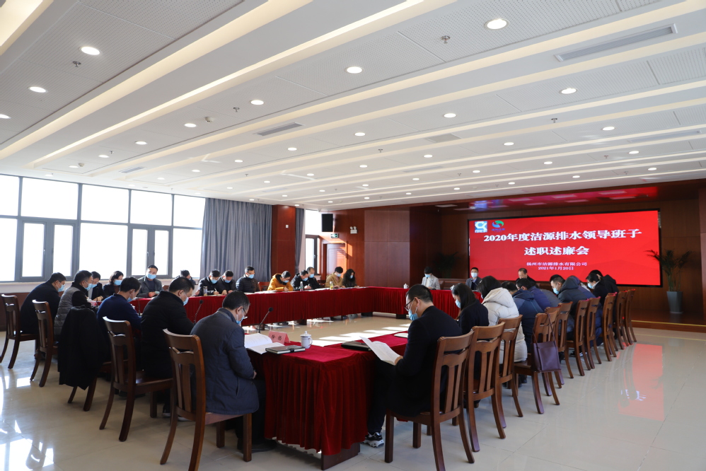 1月20日上午,洁源排水公司召开了2020年度领导班子述职述廉述法述学工作会议。城控集团党委副书记徐飞,集团考核小组出席了会议,洁源排水公司领导班子成员、全体中层干部及部分职工代表参会。