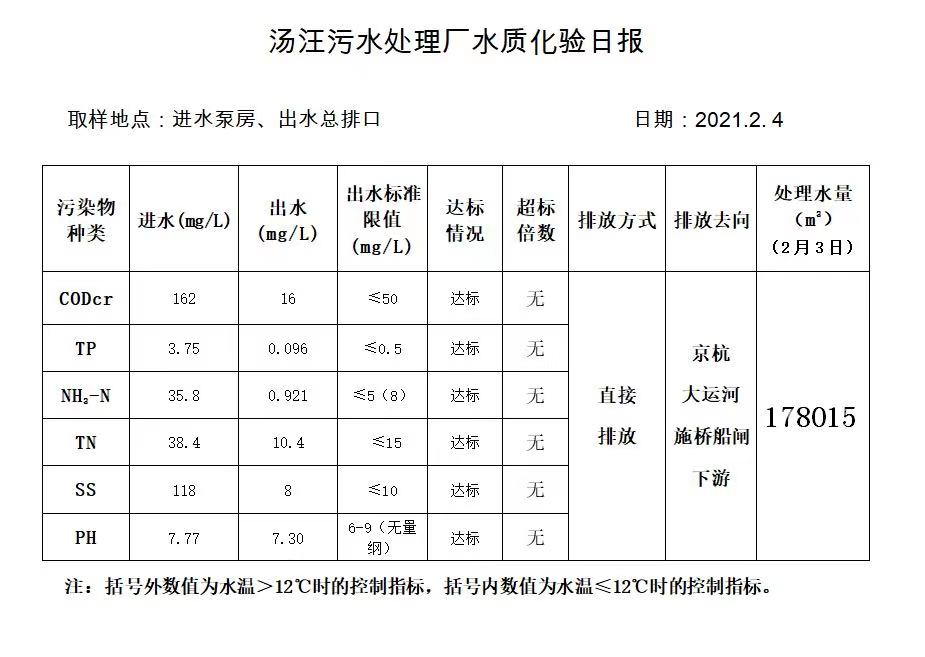 汤汪污水处理厂水质化验日报(2021.2.4)