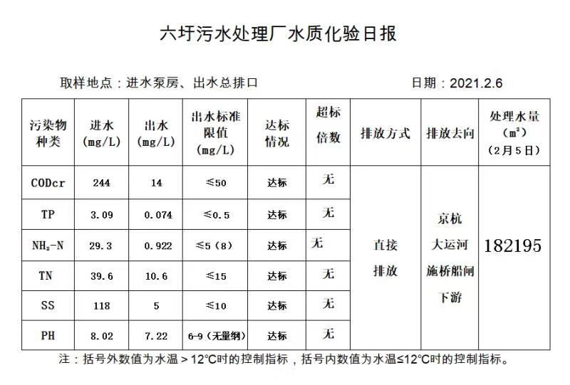 六圩污水处理厂水质化验日报(2021.2.6)