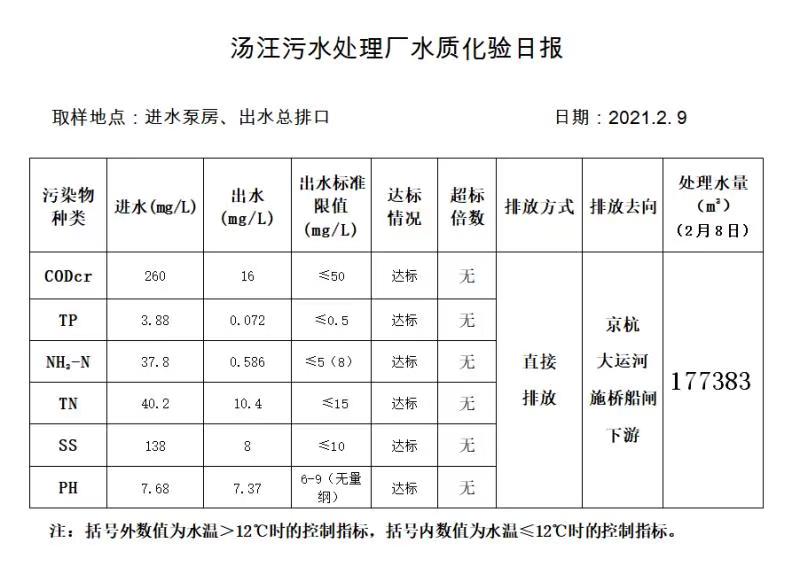汤汪污水处理厂水质化验日报(2021.2.9)
