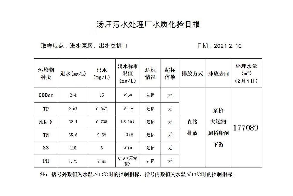 汤汪污水处理厂水质化验日报(2021.2.10)