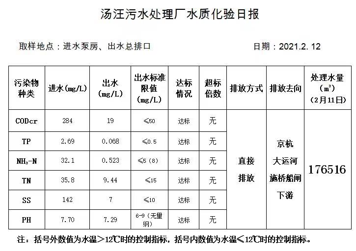汤汪污水处理厂水质化验日报(2021.2.12)