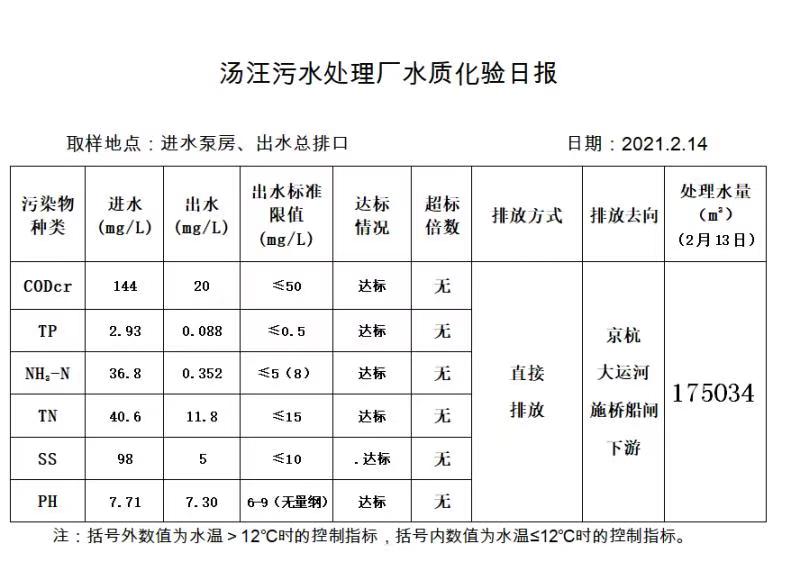 汤汪污水处理厂水质化验日报(2021.2.14)