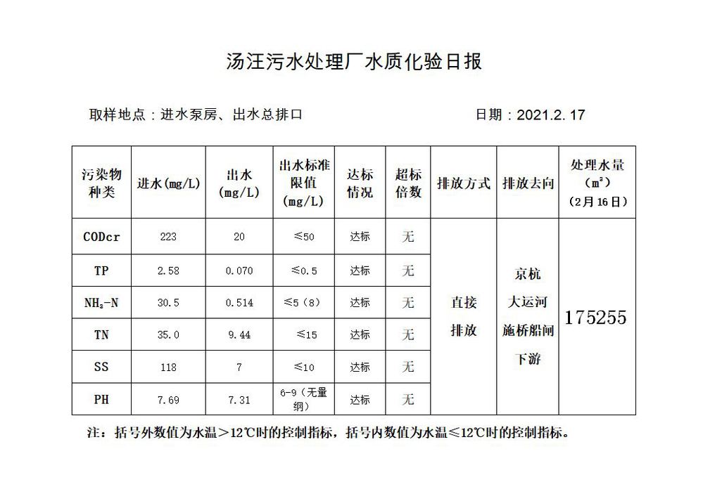 汤汪污水处理厂水质化验日报(2021.2.17)