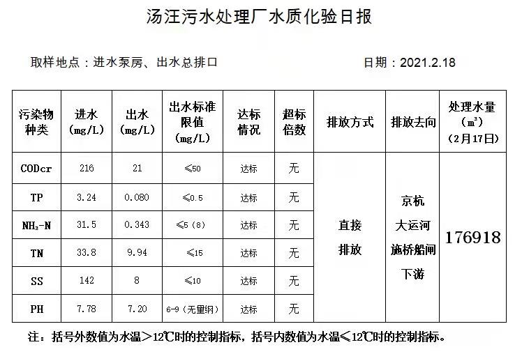 汤汪污水处理厂水质化验日报(2021.2.18)
