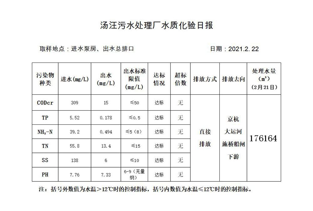 汤汪污水处理厂水质化验日报(2021.2.22)