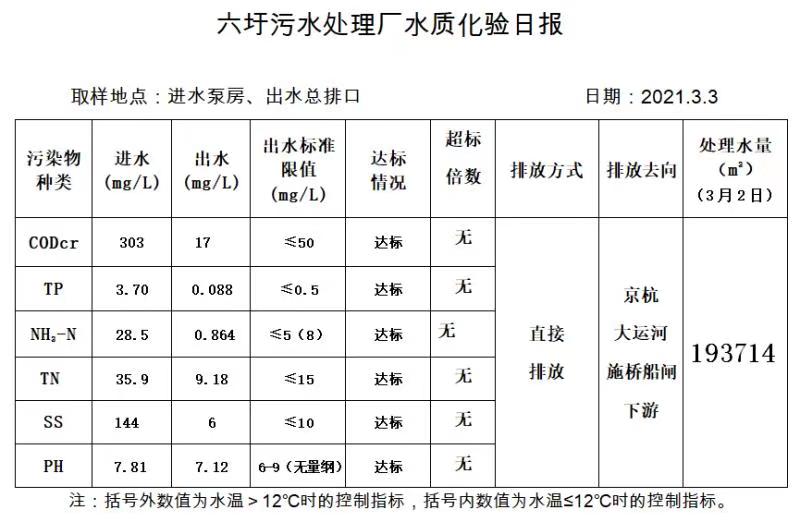 六圩污水处理厂水质化验日报(2021.3.3)