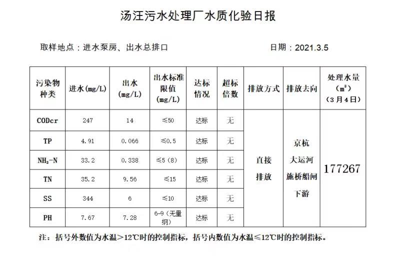 汤汪污水处理厂水质化验日报(2021.3.5)