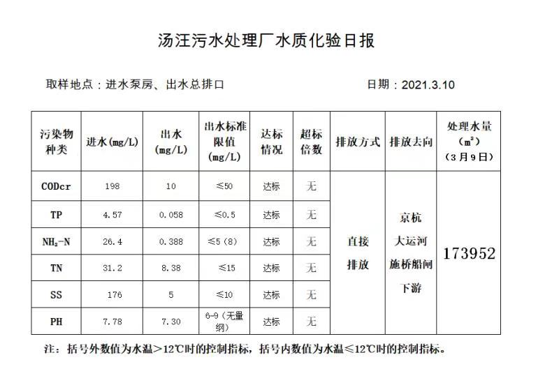 汤汪污水处理厂水质化验日报(2021.3.10)
