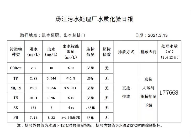 汤汪污水处理厂水质化验日报(2021.3.13)
