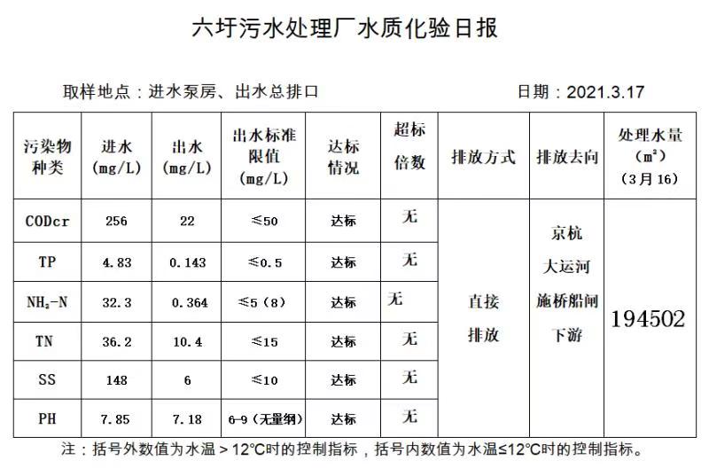 六圩污水处理厂水质化验日报(2021.3.17)