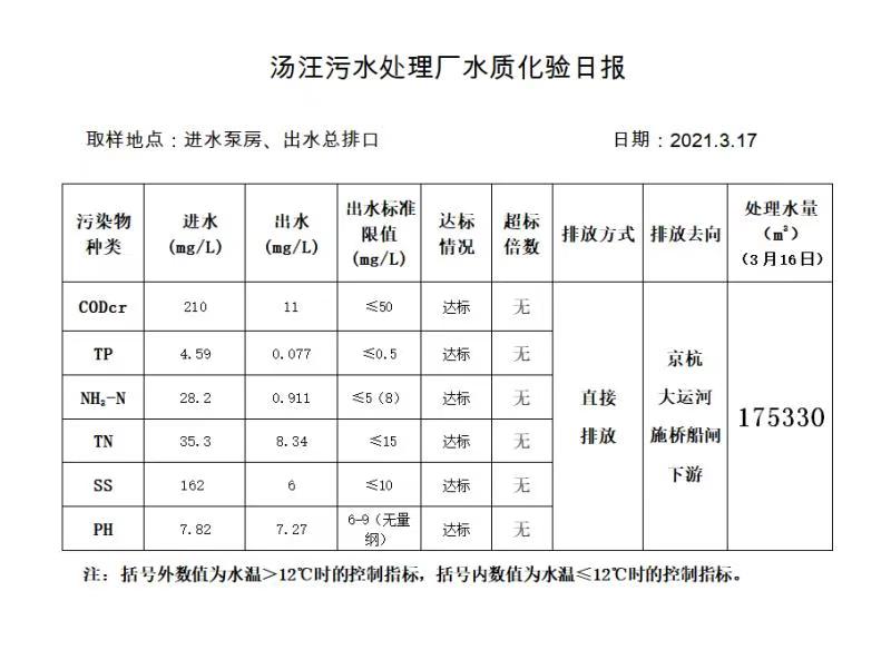汤汪污水处理厂水质化验日报(2021.3.17)
