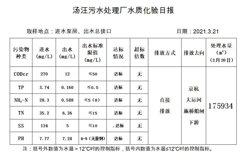 汤汪污水处理厂水质化验日报(2021.3.21)