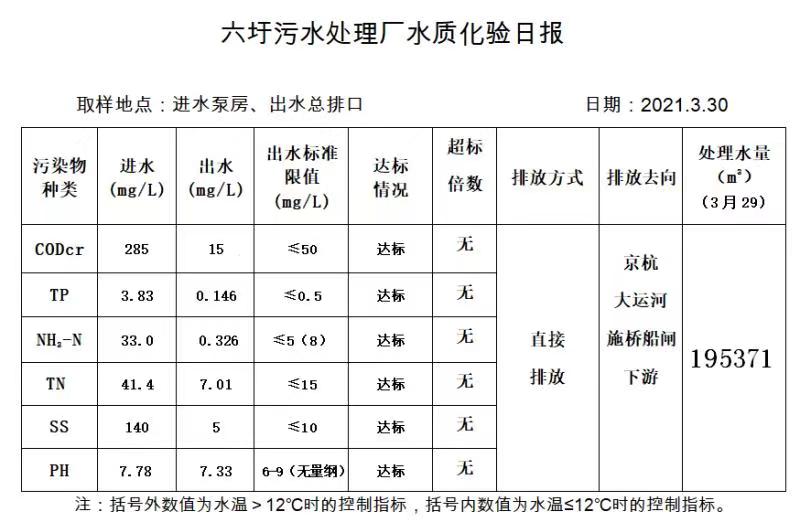 六圩污水处理厂水质化验日报(2021.3.30)