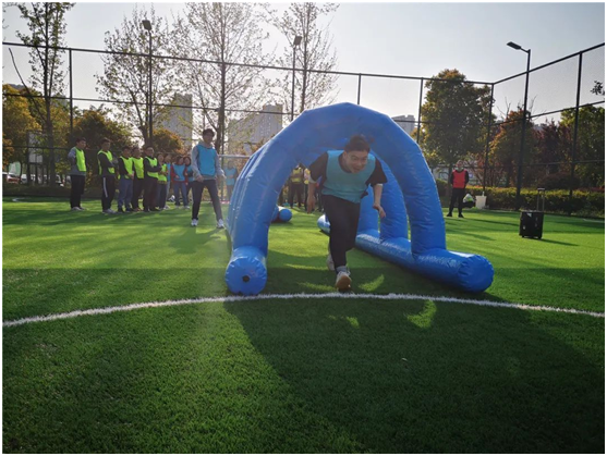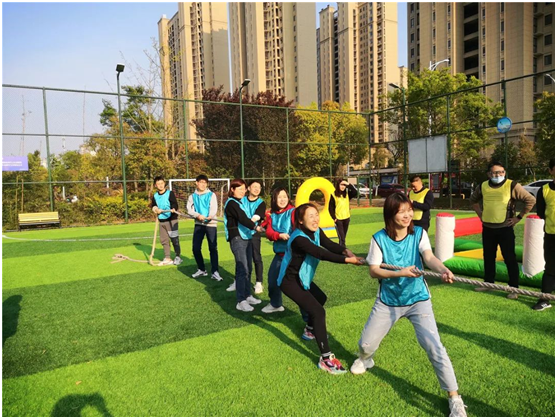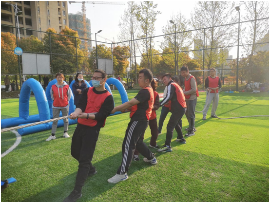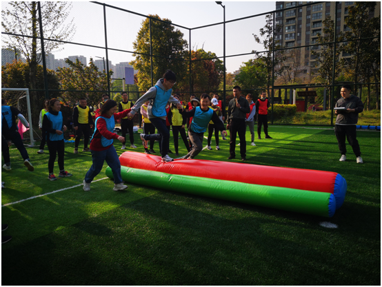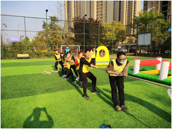 来到正式拓展环节,队员们在教练的指导下开展了“前线支援”“红色记忆”“辉煌之路”“拔河竞技”等项目的竞技比拼,各队队员充分发挥出团队协作精神,在失败中发现问题,在困境中寻找解决办法,群策群力,激烈对抗,现场呐喊声、加油声响成一片,气氛紧张而热烈。