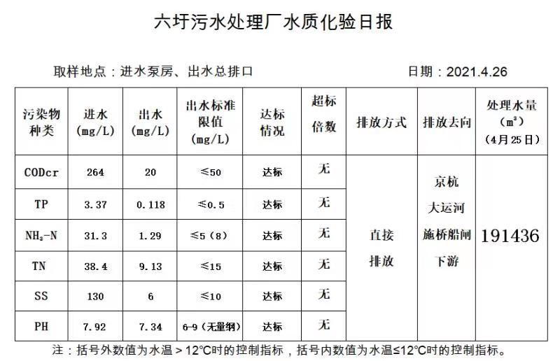 六圩污水处理厂水质化验日报(2021.4.26)