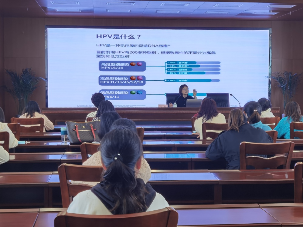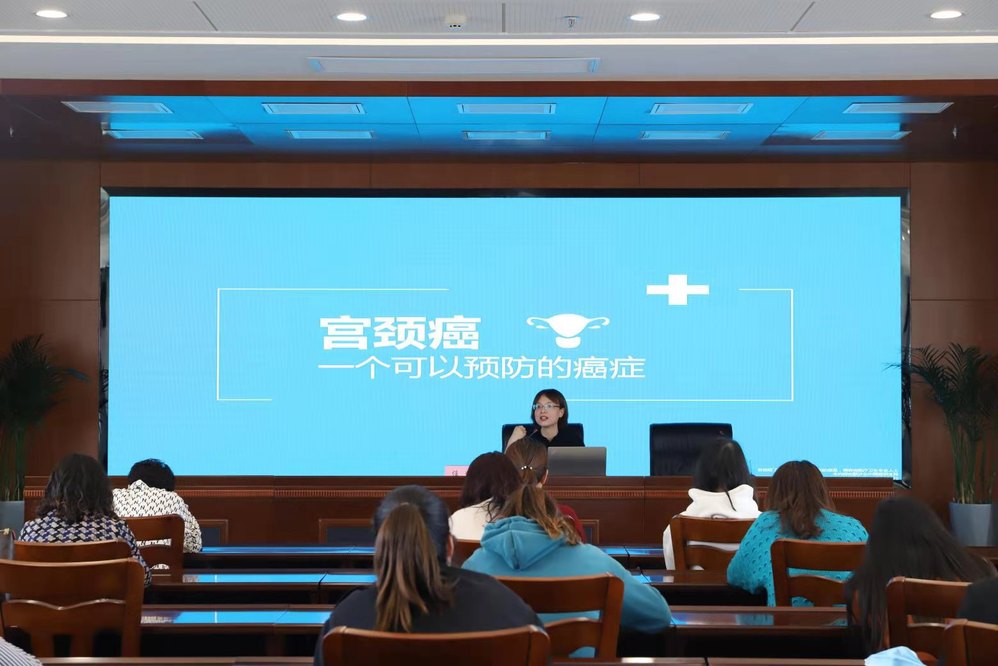 为关爱广大女职工身心健康,加强女职工自我保健意识,4月28日下午,在扬州市洁源排水有限公司5楼报告厅,扬州市洁源排水有限公司工会邀请扬州市妇幼保健院妇女保健党支部书记、妇女保健科主任任佳,为扬州市洁源排水有限公司、扬州市政管网有限公司、扬州市洁源光伏发电股份有限公司的女职工进行了一场“中国女性宫颈健康促进计划”健康关爱课堂讲座,共有50余名女职工参加了此次讲座。