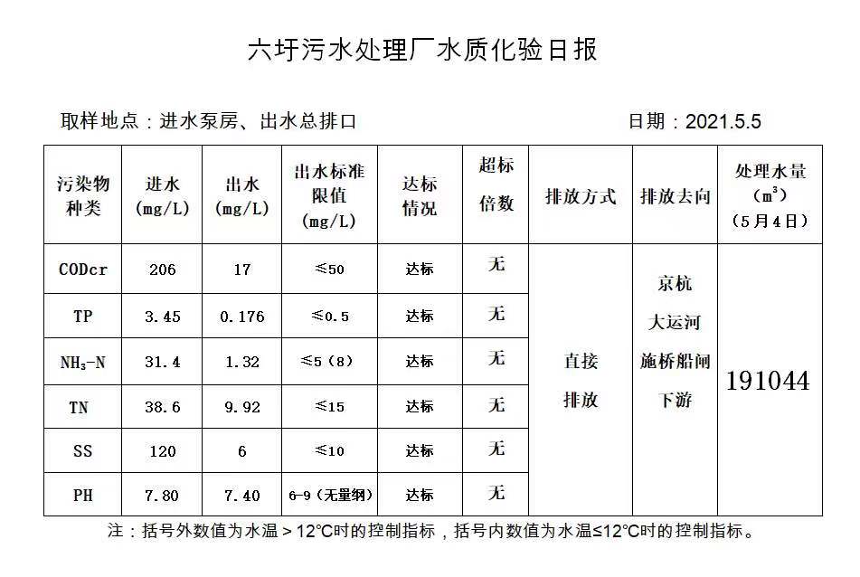 六圩污水处理厂水质化验日报(2021.5.5)