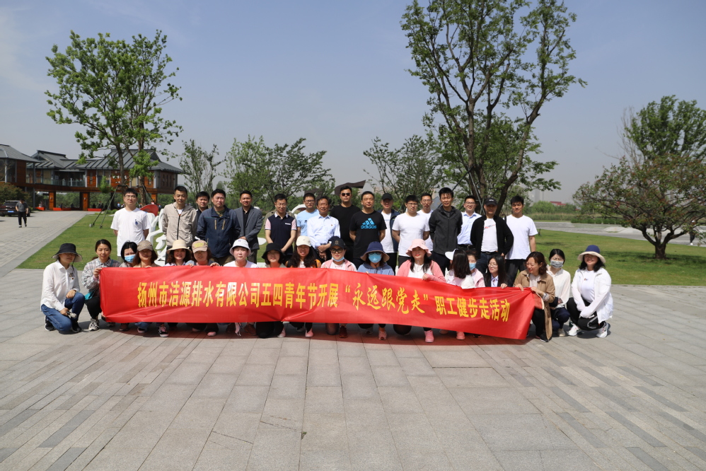 雄关漫道真如铁,而今迈步从头越。为进一步丰富职工学党史的形式,促进职工身心健康,展示公司党总支学史爱党的精神风貌,5月8日上午,在洁源排水公司组织50余名党员和青年职工来到三湾公园,开展了“学史爱党,永远跟党走”五四青年节职工健步走活动。