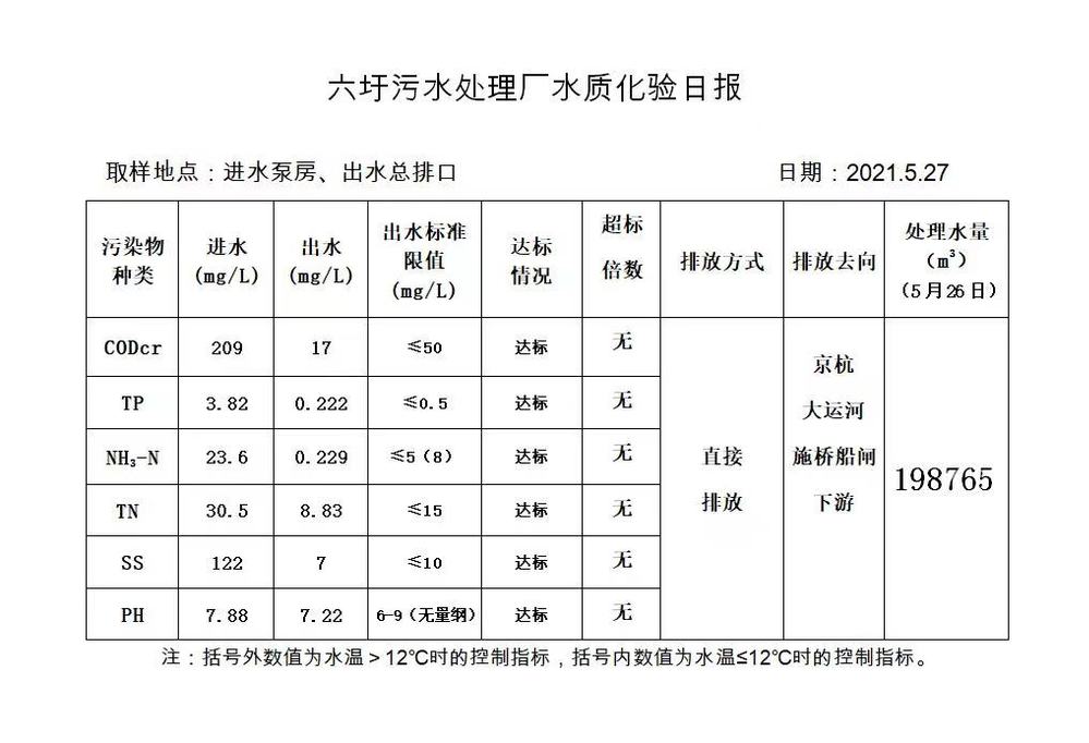 六圩污水处理厂水质化验日报(2021.5.27)