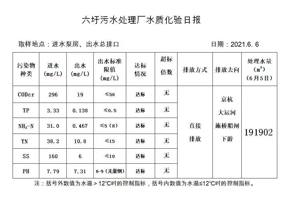 六圩污水处理厂水质化验日报(2021.6.6)