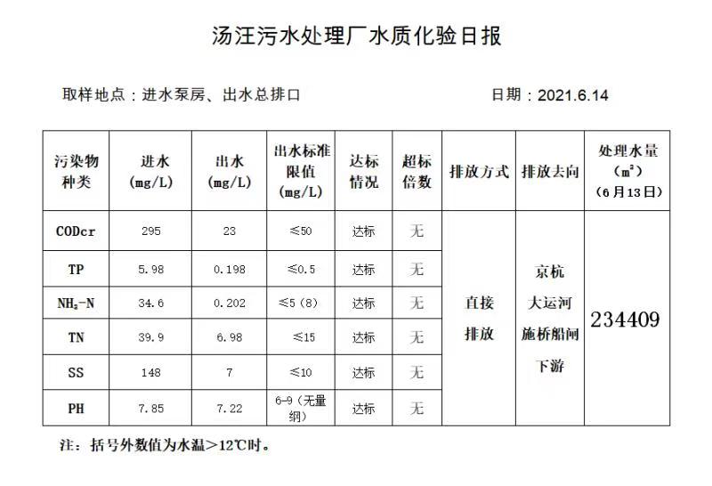 汤汪污水处理厂水质化验日报(2021.6.14)