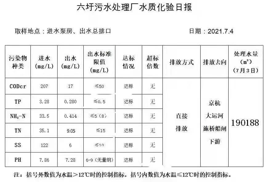 六圩污水处理厂水质化验日报(2021.7.4)