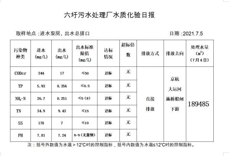 六圩污水处理厂水质化验日报(2021.7.5)