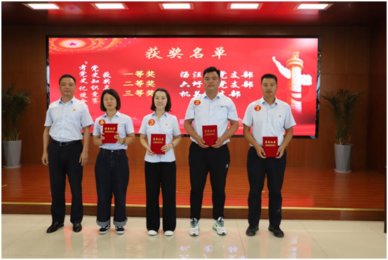 最终,汤汪厂党支部四位选手以周密的准备与默契的配合,最终斩获桂冠,获得本次“考党史记使命”知识竞赛的一等奖,六圩厂党支部、机关党支部同样表现优异,分别获得二等奖和三等奖。