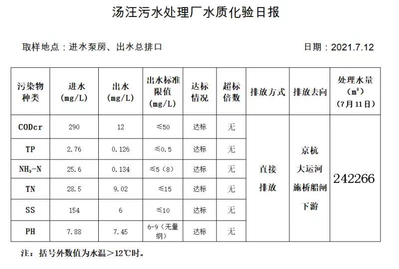 汤汪污水处理厂水质化验日报(2021.7.12)