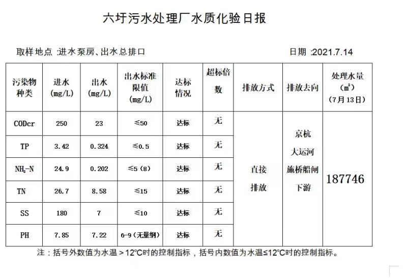 六圩污水处理厂水质化验日报(2021.7.14)