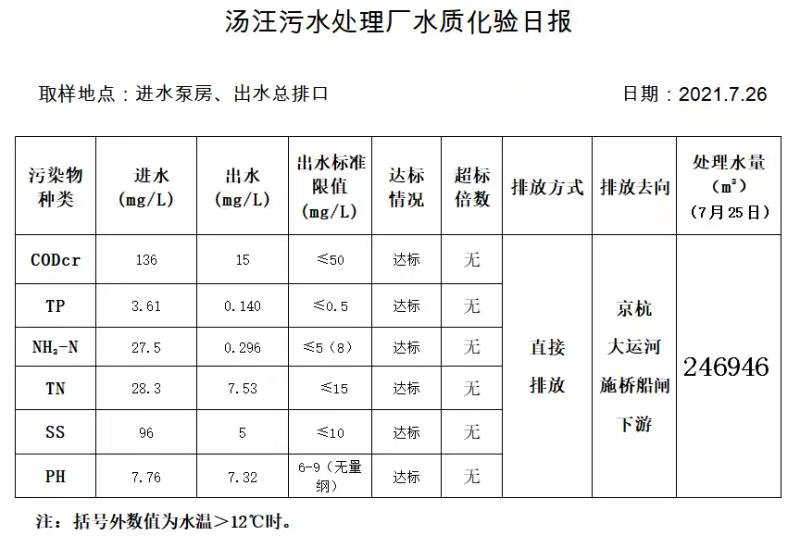 汤汪污水处理厂水质化验日报(2021.7.26)