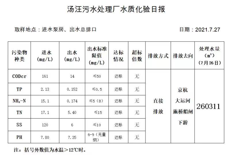 汤汪污水处理厂水质化验日报(2021.7.27)
