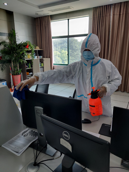1、强化在岗人员管理,实现厂区封闭运行。面对突如其来的疫情,人们可以居家隔绝病毒传播,但是在不间断运行的污水处理厂里,一线工作人员仍需要不停的工作。为保证厂区正常运行,汤汪、六圩两座污水处理厂第一时间启动封闭管理并实行轮岗制,保证厂区24小时稳定运行,严禁无关人员进入厂区,所有进入人员一律验证“两码一证”,并检测体温和佩戴口罩。同时,要求所有生产运行人员必须佩戴防护口罩和手套,每日两次对厂区综合楼以及生产岗位进行全面消杀,保障工作环境卫生。