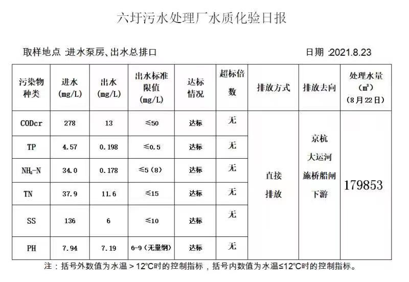 六圩污水处理厂水质化验日报(2021.8.23)