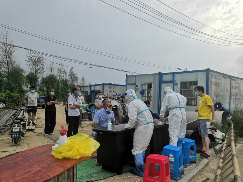 在汤汪污水处理厂三期工程扩建项目工地现有民工23人,为避免人员流动带来的病毒传播风险,公司对工地进行了封闭管理,每天周知都前往工地进行人员点名、健康筛查等工作,了解他们的诉求和困难,进行防疫知识的宣传,并为他们送去生活物资,保证了他们生活稳定。同时,他还积极对接属地卫健部门,单独对他们进行了多轮核酸检测。