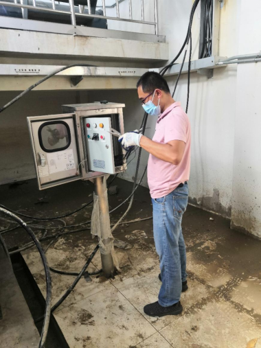 8月29日凌晨,一段急促的电话铃声打断了蒋宏根的休息,原来是汤汪厂加药间一组PAC投加装置突然发生故障,无法正常运行。蒋宏根立刻联系自控主管张传标,带上工具迅速赶往现场。药剂能否稳定投加直接关系出水质量,他们在做好防疫保护措施后,分头行动,抓紧排查故障原因,制定了详细的维修方案,经过3个小时的紧张维修,故障得以顺利排除。维修结束后,汗水浸透了他们的衣衫,他们没有一个人喊苦叫累。