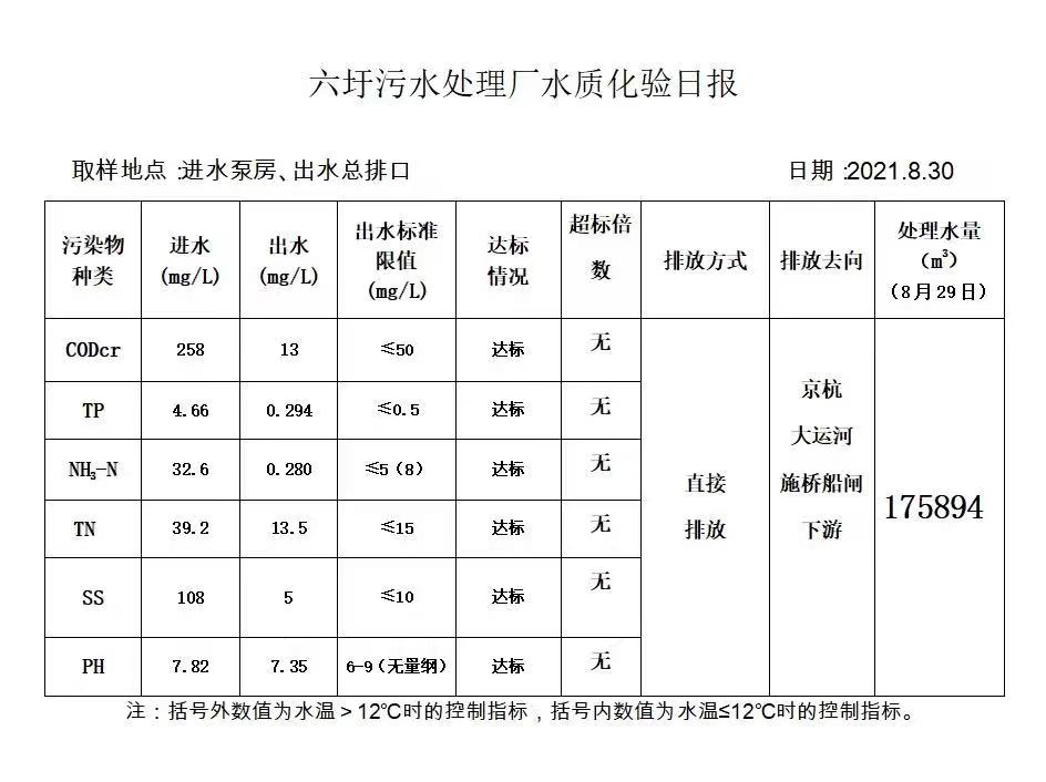 六圩污水处理厂水质化验日报(2021.8.30)