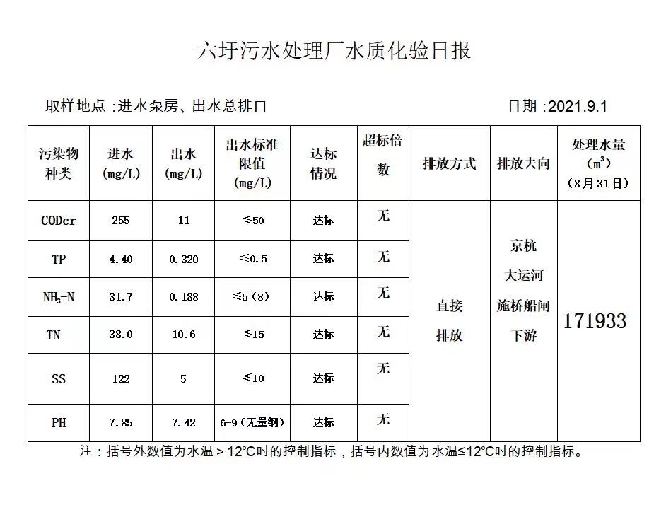 六圩污水处理厂水质化验日报(2021.9.1)