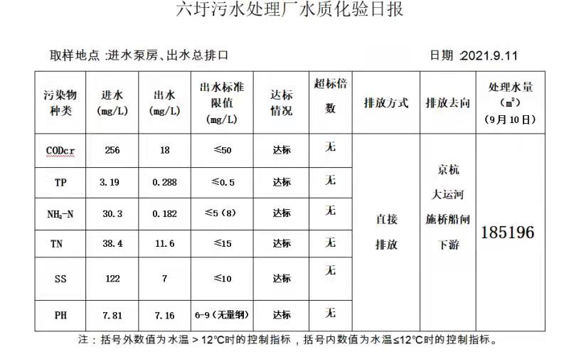 六圩污水处理厂水质化验日报(2021.9.11)