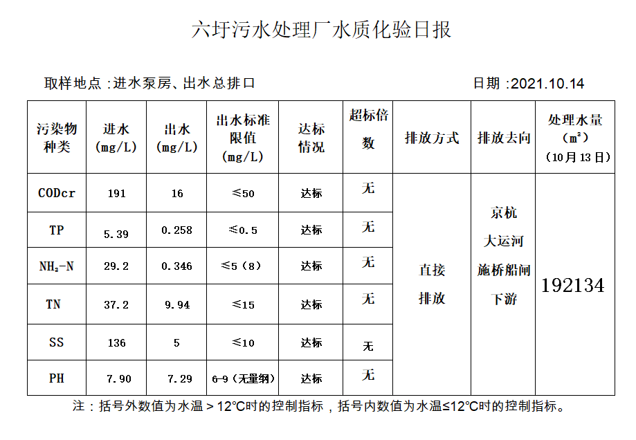 六圩污水处理厂水质化验日报(2021.10.14)