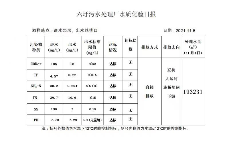 六圩污水处理厂水质化验日报(2021.11.5)